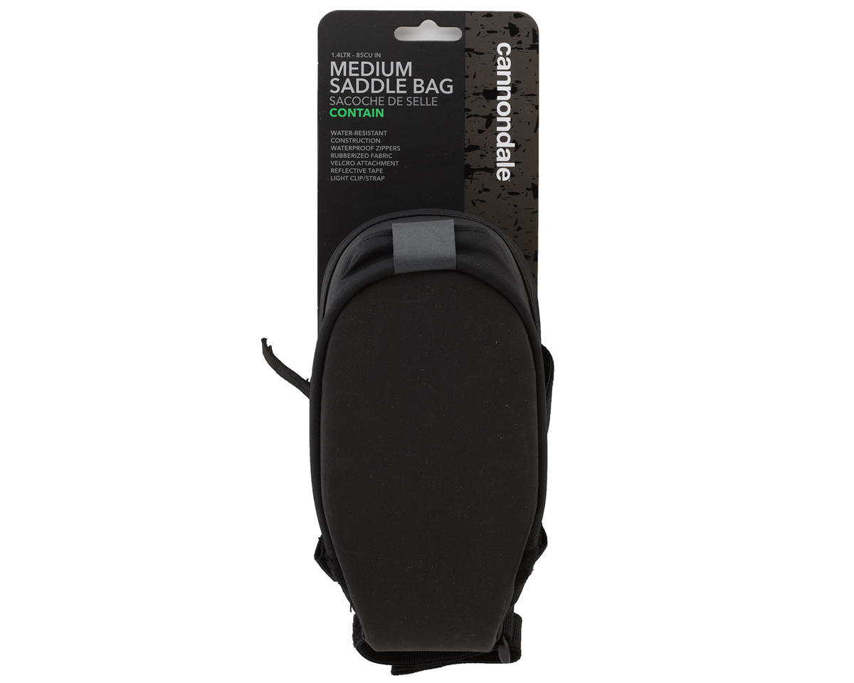 The Cannondale Contain Saddle Bag stores riding essentials and allows quick access for trail-side repairs or cash at the required coffee stop.